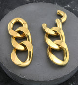 Add a stylish edge to your look with these gold pvd 316L stainless steel, triple chain link hinged ear weights. Enjoy the look and comfort with the magnetic hinged design, allowing for easy insertion and removal. Sold in pairs of two, these ear weights come size 2G (6mm) so must be 2G or bigger. They measure about 55mm x 22mm and weight 28 grams each. Sold in pairs (2pcs).
