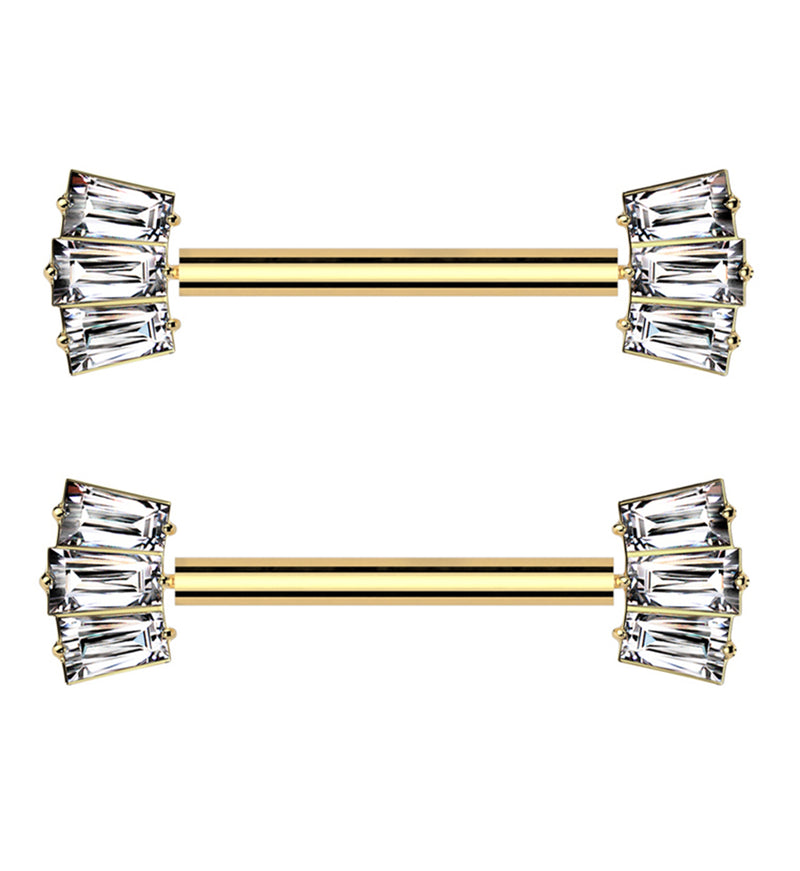 Gold PVD Triple Clear Baguette Threadless Titanium Nipple Barbell