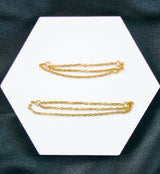 Connect two piercings with this golden, connector chain! It consists of three rolo chains connected with two 3mm jump rings on either side. Made from gold pvd on ASTM F-136 titanium. Choose your chain length: 30mm, 40mm. Thickness is about .5mm (0.02"). Sold individually.