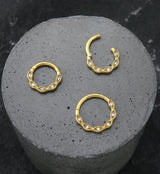 Gold PVD Twist Beaded Clear CZ Stainless Steel Hinged Segment Ring