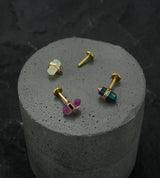 Gold PVD White Crystal Stainless Steel Internally Threaded Labret