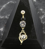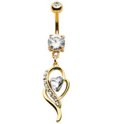 Gold PVD Wisp Clear Heart CZ Dangle Belly Button Ring