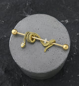Gold PVD Wrapped Snake CZ Stainless Steel Industrial Barbell