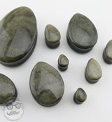 These unique Golden Obsidian Teardrop Stone Plugs come in pairs and will add a touch of natural beauty to any look. Though the tips of the plugs are teardrop shaped, they will appear to be flashy in different angles of the light due to the natural gold obsidian. With a wearable area of 11mm-12mm and 2mm flare, these double flare plugs are sure to make a statement!