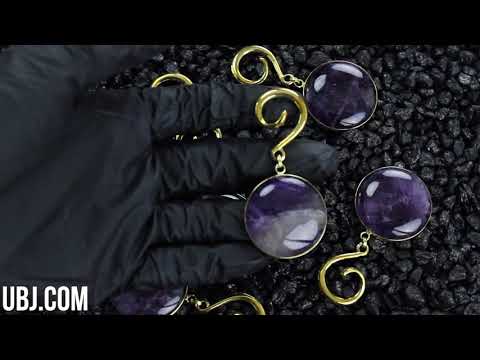 Sold in pairs (2pc) Amethyst stone NOTICE: color will have some variance for each piece Appx 19 grams each piece 6G or bigger to wear Appx Width: 32mm Appx Height: 65mm Made from brass Brass is not meant for long term wear. May oxidize under extreme moisture conditions Free domestic shipping
