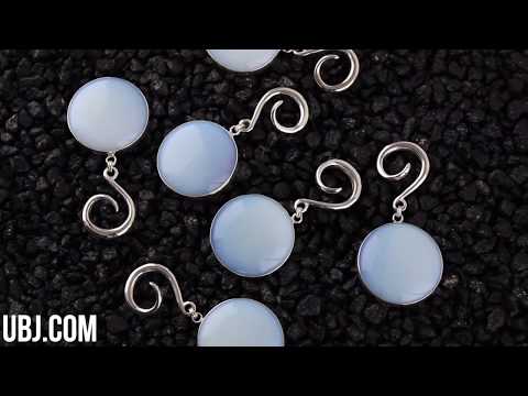 Sold in pairs (2pc) Opalite glass NOTICE: color will have some variance for each piece Appx 19 grams each piece 6G or bigger to wear Appx Width: 32mm Appx Height: 65mm Made from sterling silver & brass Silver & brass are not meant for long term wear. May oxidize under extreme moisture conditions Free domestic shipping
