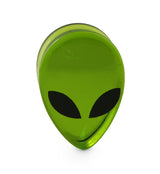 Space-worthy alien teardrop plugs. Made from green glass with an alien head design and teardrop shape. Double flares. Sizes: 0G - 3/4" (20mm). Sizes may run big due to teardrop shape (+/- .5mm - 1mm). If you are between sizes, go with the smaller size. Smooth & polished. Sold in pairs (2 pieces).
