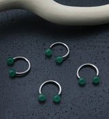 316L stainless steel internally threaded circular barbell with two natural green aventurine stone balls. Size 16G with an inner diameter of 3/8" (10mm). Aventurine is said to bring prosperity and good luck! An awesome piece to add to your body jewelry collection.