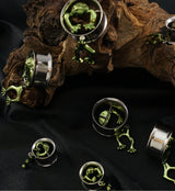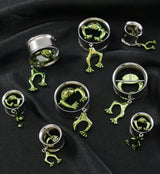 Stainless steel tunnels plugs with a cute, dangling frog design that makes it look like the frog is dangling from your ear lobe. Made from 316L stainless steel. Available sizes: 7/16" (11mm), 1/2" (12mm), 9/16" (14mm), 5/8" (16mm), 3/4" (19mm). Full length is about 10mm and the wearable area is about 8mm. Sold in pairs (2pcs).