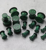 Green dragon veins acrylic plugs with single flares. Comes with 4 "O" rings. These are sold in pairs. Cool plugs to add to your jewelry collection! For healed lobes. Free shipping.