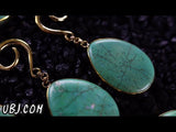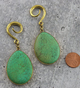 Sold in pairs (2pc) 4G or bigger to wear NOTICE: color will have some variance for each piece Appx 24 grams each piece Howlite stone dyed green Appx Width: 32mm Appx Height: 78mm Made from brass Brass is not meant for long term wear May oxidize under extreme moisture conditions Free domestic shipping