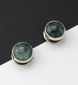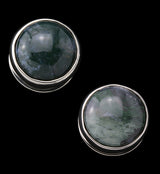 Green Moss Agate Stone Disk White Brass Ear Weights
