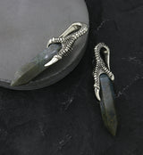 Green Moss Agate Raven Claw White Brass Ear Weights