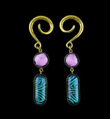 Green & Pink Double Dichroic Plane Glass Brass Ear Weights