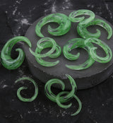 Experience the beauty of handmade Pyrex glass with our Green Swirl Glass Spirals. Perfect for those seeking a unique piece, each spiral is individual in color and pattern due to the handmade process. We will do our best to find you a matching pair. Available in sizes ranging from 8G (3mm) to 1/2" (12mm). Sold in pairs (2pcs).