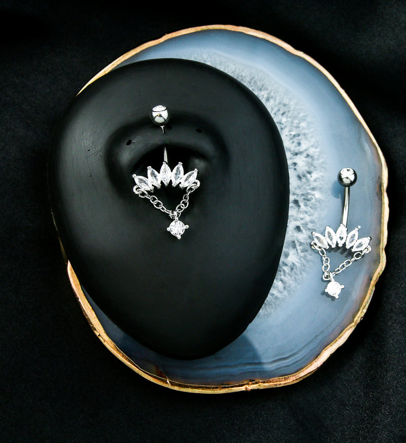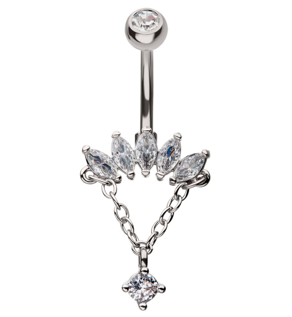 Half Crown Clear CZ Dangle Stainless Steel Belly Button Ring
