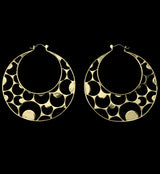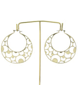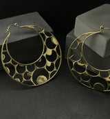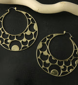 Brass hangers/earrings with cut outs of crescent moons throughout. ASTM f-136 titanium clasp. Size is 18G with approximate dimensions of 80mm x 70mm. These are sold in pairs (2pcs).