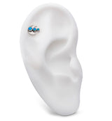 Beautiful threadless top piece that has a crescent moon design with a line of three synthetic, blue opal gems. Made from ASTM F-136 titanium. Measures about 8mm x 7.5mm. 25G pin. Fits most threadless posts. Sold individually (top piece only).