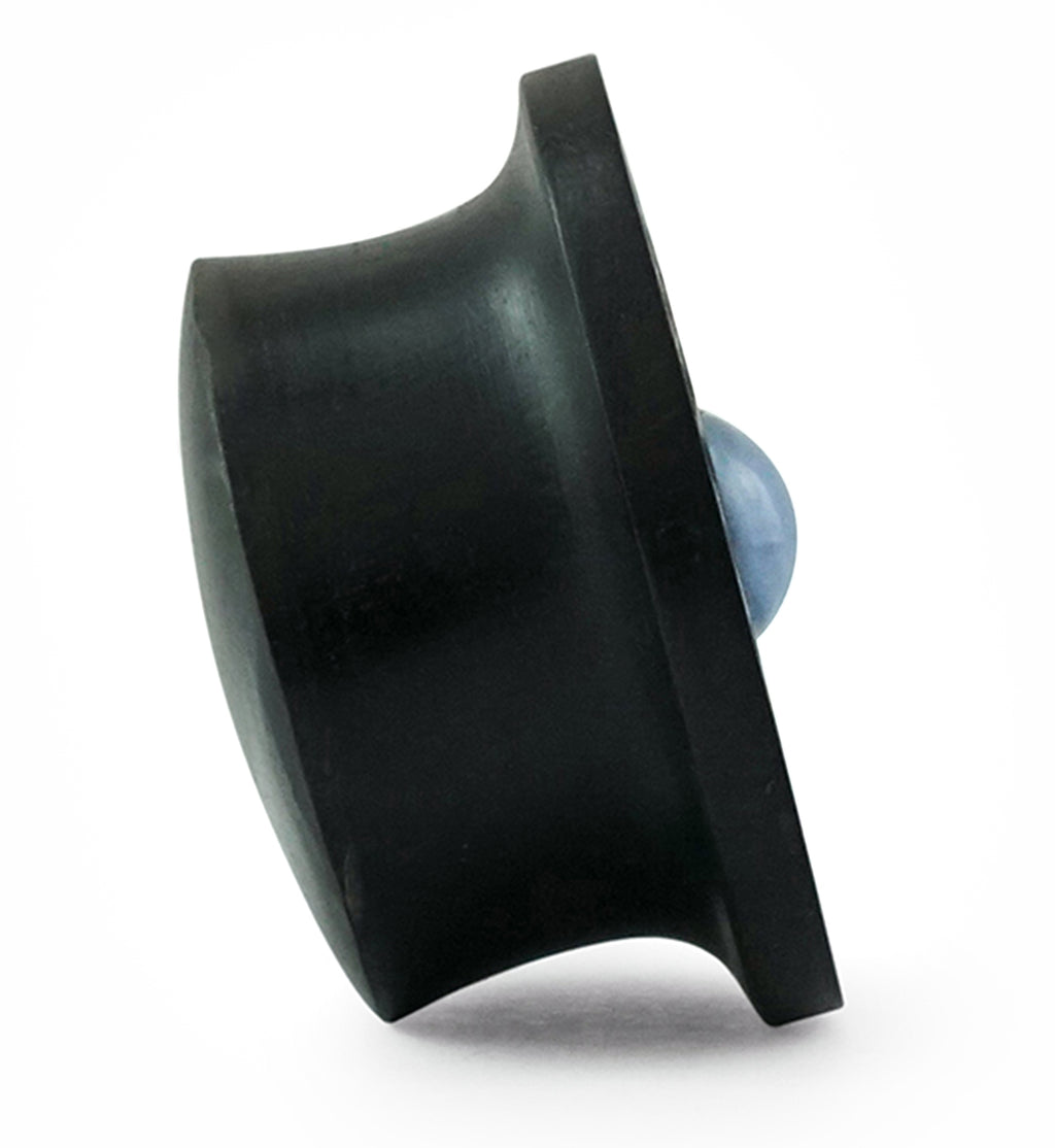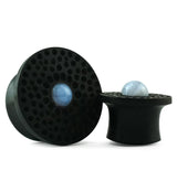 Mayan flared plugs that have a hammered texture and are handcrafted from natural areng wood. In the middle, there was a 10mm blue lace agate stone inlay. Please note that each piece will be unique in color and pattern due to the nature of the wood and stone. Don't worry, we will do our best to find you a matching/complementing pair. These plugs are available in sizes 3/4" (19mm) - 1 & 1/4" (32mm) with a 12mm wearable area. For healed piercings/lobes. Sold in pairs (2pcs).