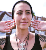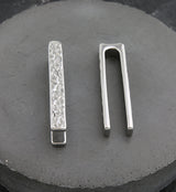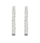 Handcrafted ear weights/hangers with hammered, long design made from 316L stainless steel. Height: 44mm, width: 6mm. Height and width are approximate as these are handcrafted. Size is 2G (6mm) and bigger to wear with an approximate weight of 17 grams each. Sold in pairs (2pcs). For healed lobes/piercings.