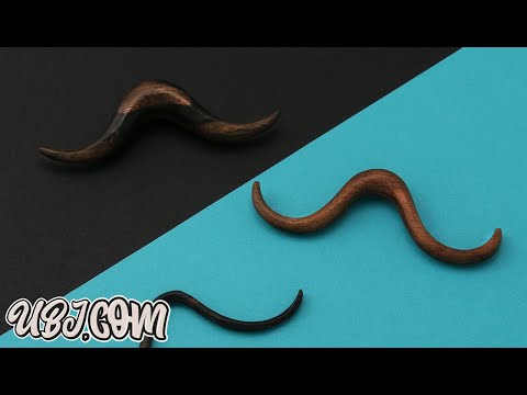 Handlebar style mustache septum bars made from areng wood. These are handcrafted and polished, making each piece unique in pattern and color. Choose your size from 12G - 0G. Length is approximately 50-52mm (2 inches). Sold individually (1 pc). For healed piercings.