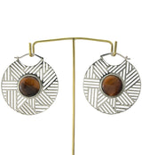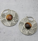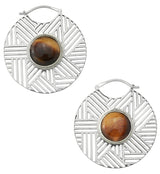 Haphazard Tigers Eye Stone White Brass Ear Weights
