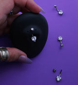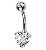 Heart Prong Clear CZ Titanium Belly Button Ring