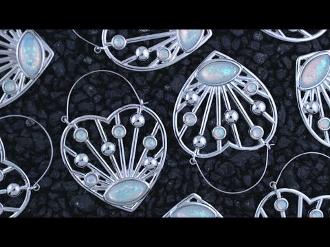 Plug hoops with a heart shaped design that has an oval synthetic white opal gem at the bottom with round white opalite gems and steel beads bursting out from it. They are 20G and made from 316L stainless steel with a 316L stainless steel post. These styles are made to fit in any eyelet/tunnel style of plugs but can also be worn in normal ear piercings. Dimension: 75mm (L) x 59mm (W). Sold in pairs (2 pcs).