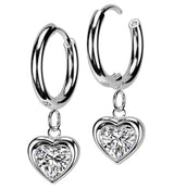 Heart Clear CZ Dangle Stainless Steel Hinged Earrings