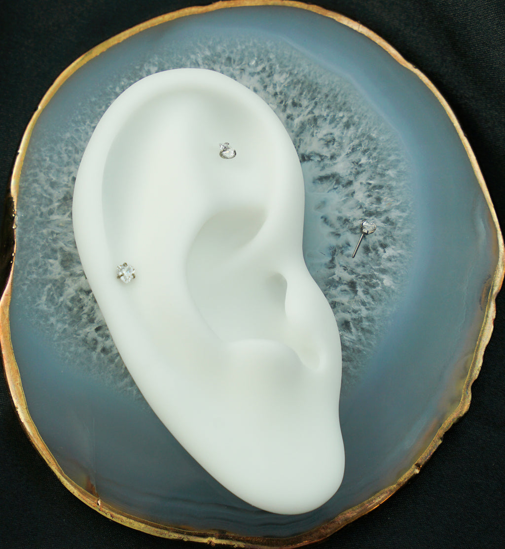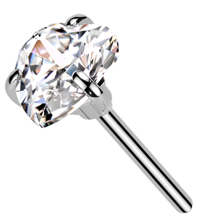Made with strong ASTM F-136 titanium, this threadless top piece has a heart-shaped, clear cz gem in a prong setting on top. Gem size measures about 3mm. This top has a threadless design and fits most threadless posts for easy wear. Sold individually (1pc).
