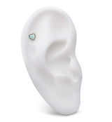 Cute threadless top piece that has a heart shaped, synthetic white opalite gem design. Made from ASTM F-136 titanium. Measures about 4.5mm x 4.5 x 2.5mm. 25G pin. Fits most threadless posts. Sold individually (top piece only).