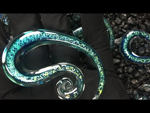 Sold in pairs, these Helical Blue Dichroic Glass Spirals bring a splash of unique color and pattern to your healed lobes. Handcrafted with care, each piece features a one-of-a-kind dichroic design that shines differently every time. Available in sizes from 2G (6mm) to 9/16" (14mm), but please note the sizing may differ up to +/- 0.4mm. Please note, these are not for ear stretching!