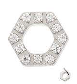 Hexagon Pave Clear CZ Threadless Titanium Top
