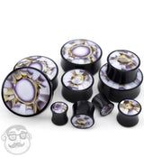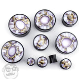Pick from 00G - 1 & 1/4" inch Sold in pairs (2pc) Sanded Cukli shell inlay Double flares Smooth surface Sustainable water buffalo horn 11mm wearable surface Do not leave in direct sunlight or in water