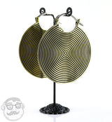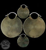 Hypnotic brass earrings / weights that are sure to be a fun addition to your jewelry collection. They are made from brass with a silver clasp. Large: 34 grams each