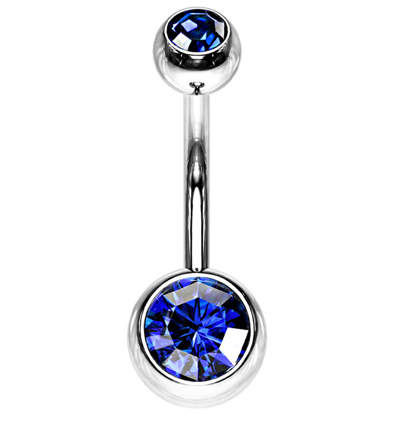 Internally Threaded Bezel Blue CZ Belly Button Ring