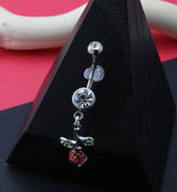 Hanging upside down stemmed rose belly button ring. Made with 316L stainless steel and sparkling cz gems throughout as well as on the top and bottom of the barbell. Barbell size is 14G with a 3/8" (10mm) length. Externally threaded. For healed piercings.