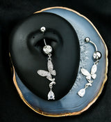 Jointed Butterfly Clear CZ Teardrop Dangle Stainless Steel Belly Button Ring