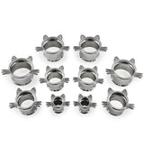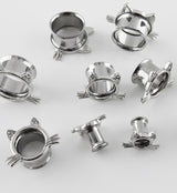 Sold in pairs (2 pieces) and made of 316L stainless steel, these tunnels are double flared and suitable for fully healed piercings. Choose from 2G - 5/8" sizes with a full length of 11mm. Kitty cat design
