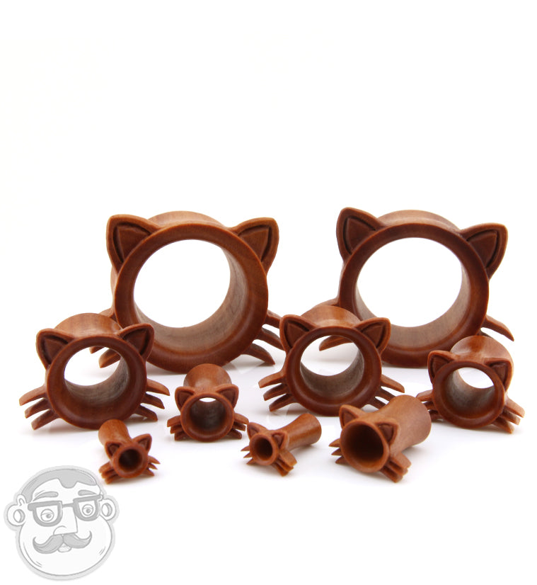 Sold in pairs, these Kitty Kat Wooden Tunnels feature a double flare design made from natural Saba wood for a unique, handcrafted look. Available in sizes from 6G (4mm) up to 1 1/4" (32mm), with a full length of 11–12mm, they fit comfortably in healed lobes. Please note sizes may vary slightly by ±1mm. To maintain their quality, avoid exposure to extreme moisture and heat. These tunnels are intended for healed piercings and not recommended for stretching.