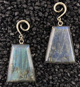 Sold in pairs (2 pieces) Natural labradorite stone NOTICE: This is the exact pair you will receive 4G or bigger to wear Handle with care Size: 90mm x 42mm +- Weight: 64 grams each White brass hooks Brass is not meant for long term wear May oxidize under extreme moisture conditions