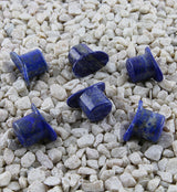 Sold individually (1 piece) Available in 00G, 1/2" Polished & smooth Handcrafted Lapis Lazuli stone Concave T-backs Overall length: 12.5mm Wearable area: 10mm