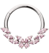 Laurel Butterfly Pink CZ Titanium Hinged Segment Ring