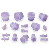 Lavender glass tunnels. Made of light purple borosilicate glass (made in USA), the single flare plugs are smooth for comfortable wear. Overall length is 12mm. Wearable area is +/- 8mm. Choose your size: 8 gauge (3mm), 6 gauge (4mm), 2 gauge (6mm), 0 gauge (8mm), 00 gauge (10mm), 7/16" (11mm), 1/2 inch (13mm). Sold in pairs (2pc).