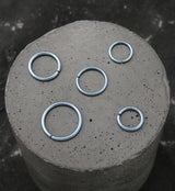 Seamless rings are perfect for adding an edge to your piercing. This ring is anodized in a light blue color, making it a great way to showcase your piercing. Niobium is a material that is fairly easy to bend, making it easy to take in and out. This piece comes in 18G and 20G and in a variety of diameters to fit your piercing comfortably. It is sold individually, and it is a great option for anyone with metal sensitivities.