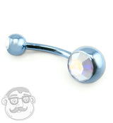 Light Blue Titanium Belly Button Ring - Rainbow CZ Gem