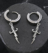 Lightning Dagger Stainless Steel Hoop Huggie Earrings
