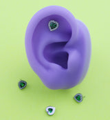 This titanium top is sold individually and made from the highest quality ASTM F-136 titanium with a heart shaped emerald cz gem lined with clear cz gems. It measures about 7mm x 7mm in size and is designed to fit most threadless posts with a 25G pin. Fun style to add to your piercing!