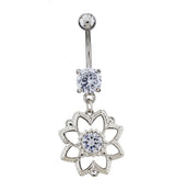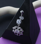 Pretty mandala flower with centered Swarovski cz gem. 316L stainless steel barbell with dual Swarovski cz gems. Size 14G with 3/8" (10mm) length. Externally threaded. Not intended for initial piercings.