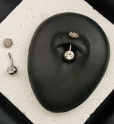 Mandala Flower Clear CZ Titanium Threadless Belly Button Ring